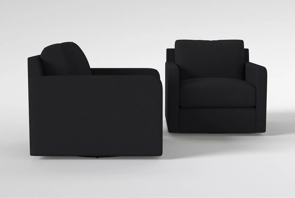 The only thing that would make our Aidan sectional sweeter is pairing it with the Aidan Twist swivel accent chair. Perfect for adding an extra member to the party, this design rotates to face the direction of conversation or the television. In addition to track arms that bring a streamlined, modern look, it features removable back and seat cushions that are easy to clean and increase the chair’s longevity. Thanks to our Special Order program, you can also customize the upholstery at no extra charge.