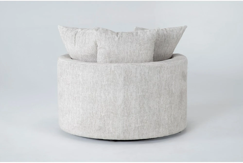 Snuggle up on the Bixby swivel cuddler, and you’ll experience the sensation of irresistible comfort and true relaxation. While cozy curves embrace you, deep seating and scatter back cushions provide a welcome refuge. Take a spin and enjoy the soothing swivel motion that allows you to face multiple directions. Available in three alluring hues, the high-quality performance fabric is durable yet super soft, plus it features a subtle chevron pattern that adds character.
