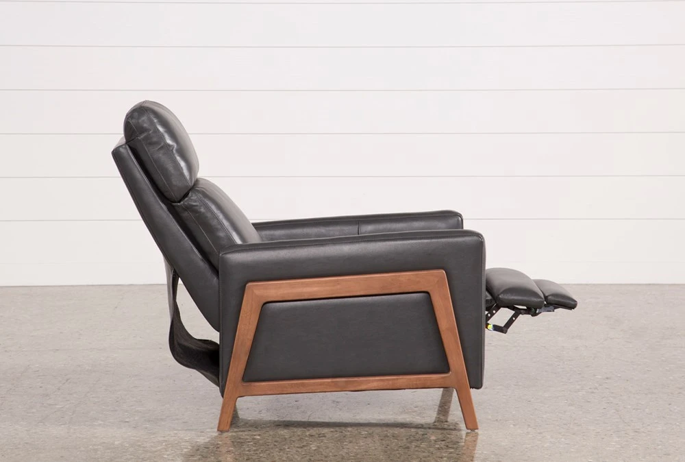 Our handsome Daniel high leg recliner will exceed your expectations for support and style. Stealthy and streamlined, a three-way push-back recliner mechanism with footrest allows you to experience deeper lounging and enjoy more distinctive design. Enriched by top grain leather seating and offered in three colors, this piece is offered at an exceptional value and found only at Living Spaces.