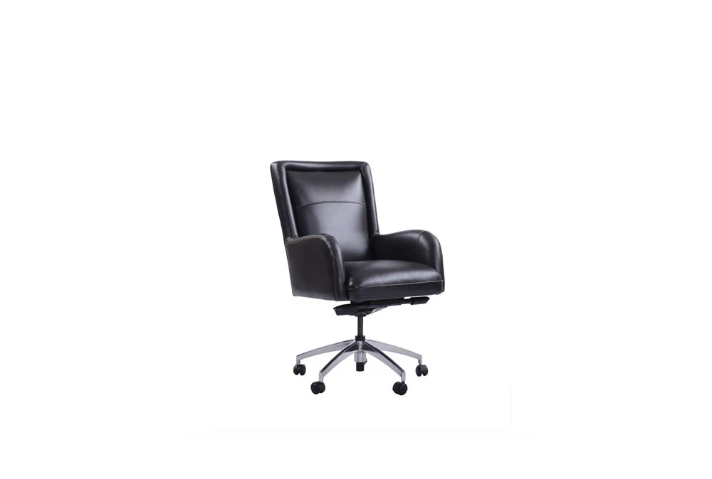 Experience the epitome of luxury with the Edgar Black Leather Office Chair, featuring a traditional style and high-quality leather material. This chair boasts wheels, arms, a swivel function, and a high back for ultimate comfort and convenience in any office setting.