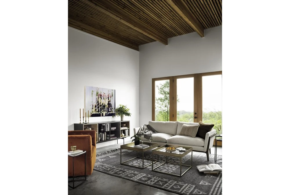 - Modern design with tufted, curved foam cushions