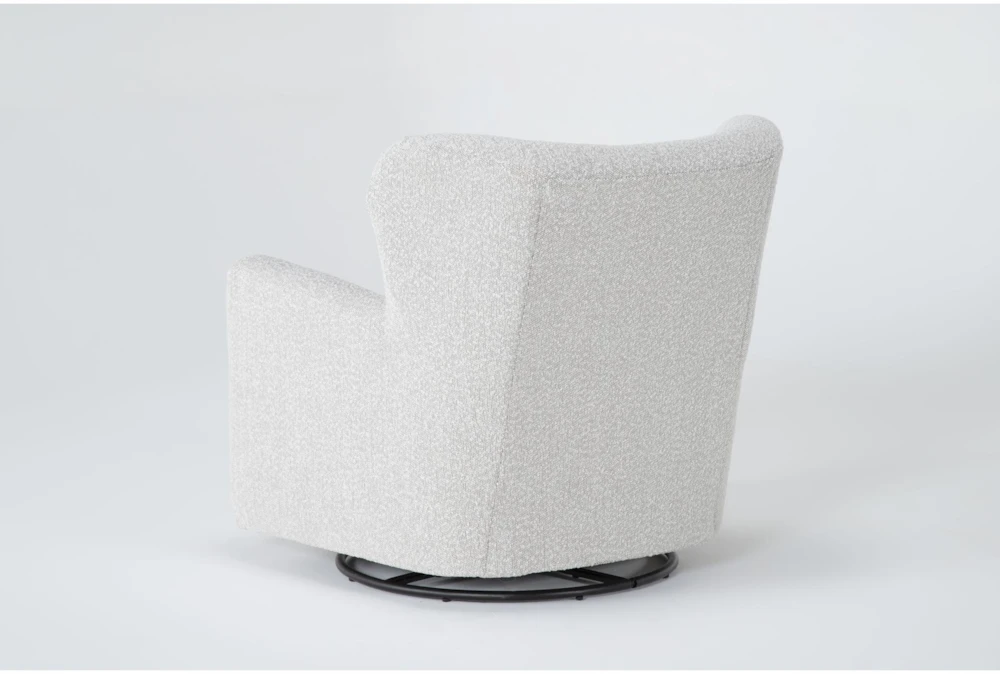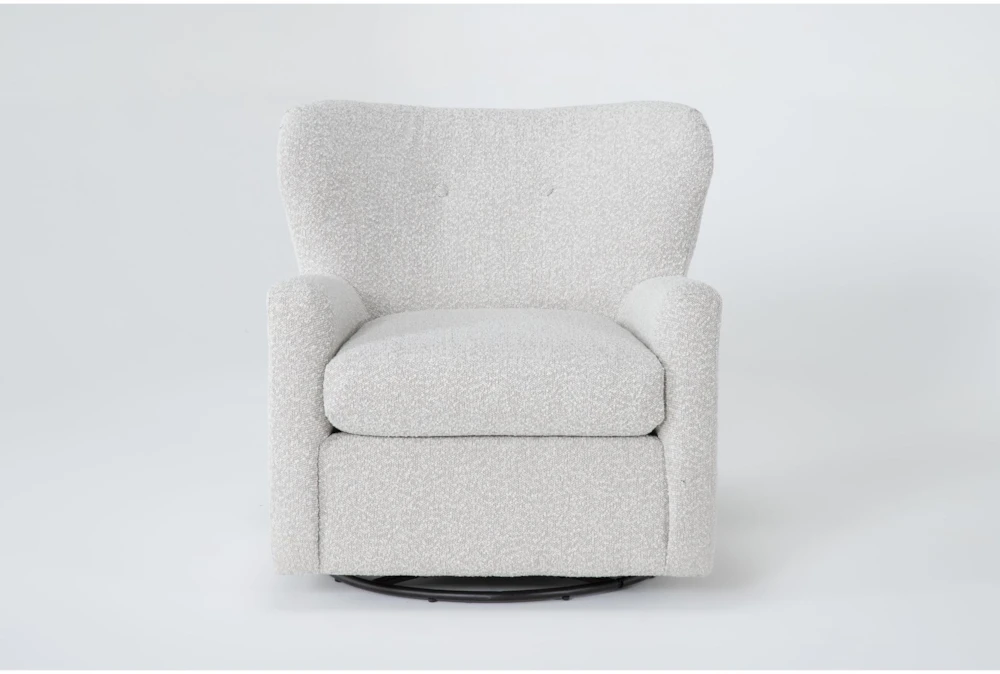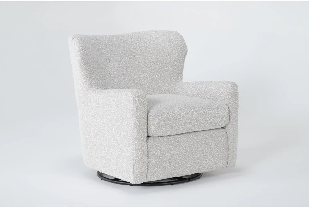 Shapely and distinctive, our Jollette swivel chair is ready to take you for a ride. Featuring a textural fabric, the design is timeless yet trend-forward. Special details include subtle button tufting and a curvy wing back-inspired silhouette.
