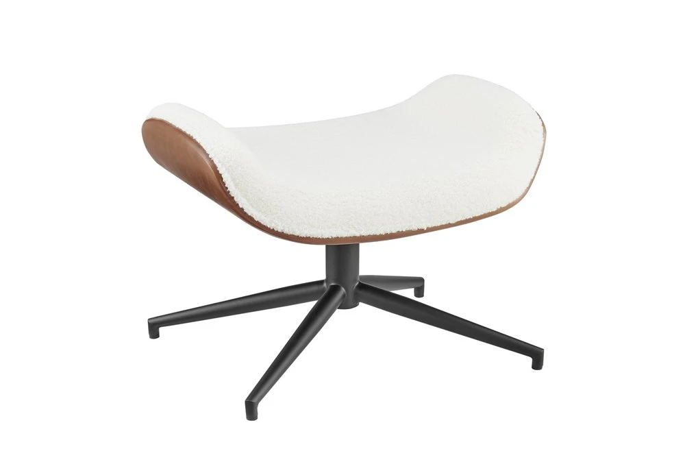 Lena Ottoman in Ivory Fabric and Brown Leatherette with Matte Black Base – Set of 1