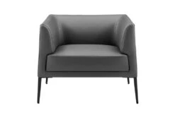 The Mani Gray Lounge Chair is a modern piece that adds a touch of sophistication to any living room. Made of leatherette over foam seat, back and armrests with a solid wood frame and matte black powder coated solid steel legs, this chair features adjustable feet and requires assembly.