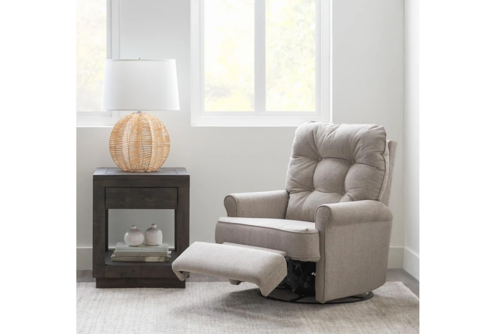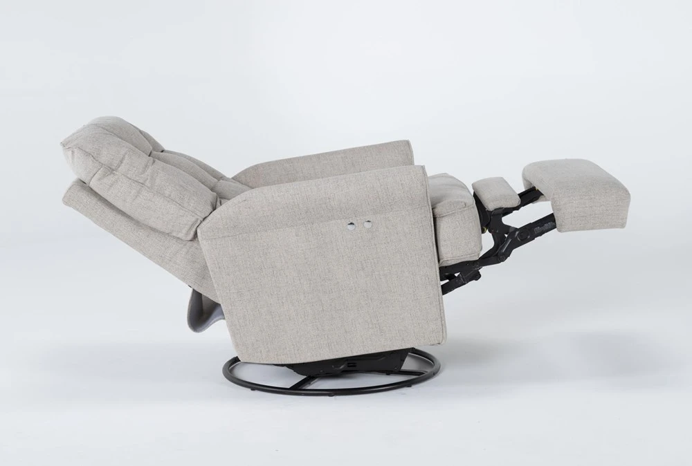 Enjoy a relaxing range of motion with our Marilee power swivel glider recliner. Designed to maximize comfort and support, it features a plush fiber-filled back and firm foam seat that invite you to sit back and stretch out. You can also move front-to-back, swivel 180 degrees and deeply recline with the tap of a power button. Extra versatile and functional, this is where you’ll find peace, calm and quiet.