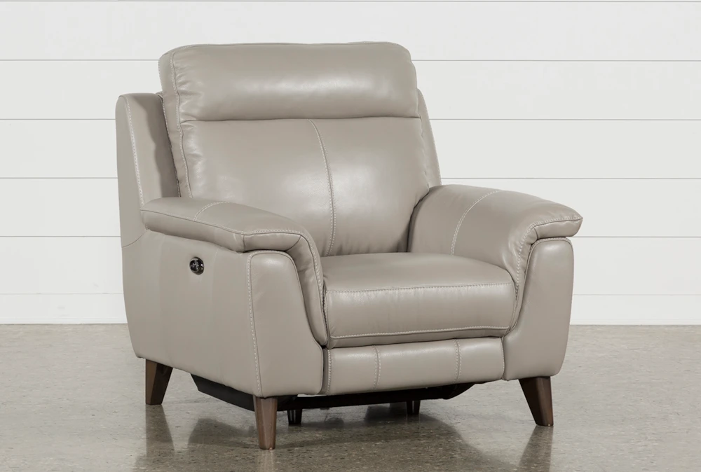All of the comforts that traditional recliners offer are taken to the next level in our Moana power recliner chair. In addition to smooth power reclining for easy, comfy relaxing, the design boasts a USB port for charging devices. Because the technology is seamlessly integrated, the modern look is what takes center stage. Top grain leather upholstery in 2 colors, tapered legs and tailored stitching give this piece contemporary style cred to match its luxury amenities.