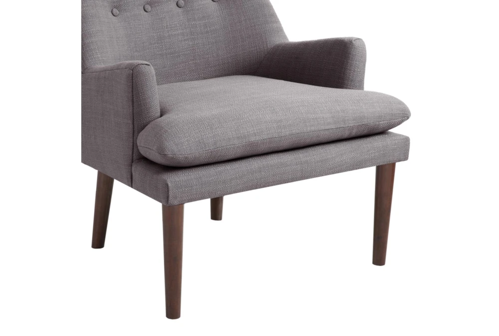 The Paulette Grey Accent Chair is a modern style chair made with plywood and dolomite materials, featuring a tufted design and grey color that will complement any living room or bedroom. Assembly is required, and the chair also includes button tufted detailing, a tight back, attached seat, and high density foam cushion for comfort.