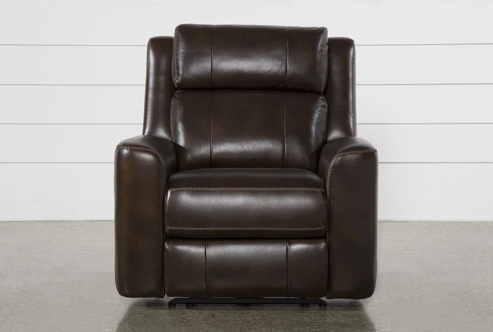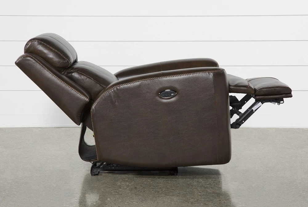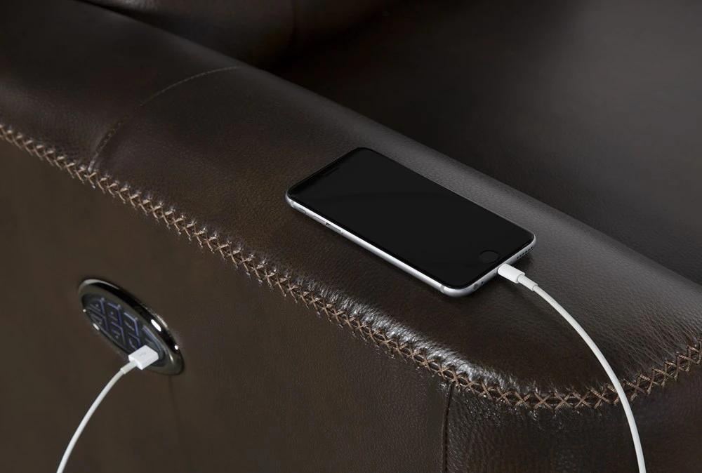 Discover deluxe comfort at its finest on our ultra-indulgent Stetson power reclining chair. Numerous amenities read like a wish list of everything you ever wanted from your lounge, including top grain leather seating. In addition to power reclining, you get full control over a power adjustable headrest and lumbar support, so you can experience multiple positions that inspire relaxation. There’s even a USB port to charge any device.