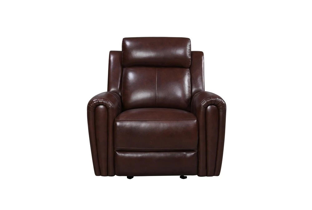 Experience comfort like never before with the Thayer Brown Leather Power Glider Recliner equipped with a USB port for added convenience. Upholstered in top grain leather with PVC in non-use areas, this casual-style recliner features robust steel mechanisms designed for smooth reclining up to 170 degrees, allowing you to relax in any position.